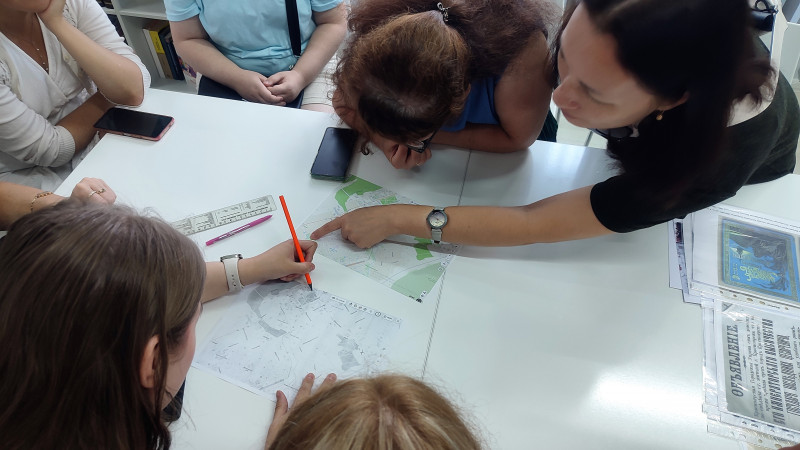 В практической части мероприятия начинающие экскурсоводы, разделившись на группы, учились самостоятельно работать с картой города, выстраивая предполагаемый маршрут рассмотренной экскурсии и собирали «портфель экскурсовода» – документы, фотографии, планы и прочие наглядные материалы, которые помогли бы гиду на этом маршруте.