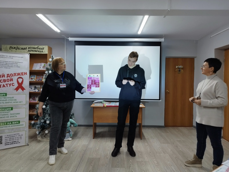 В Юношеской библиотеке для студентов Ачинского колледжа транспорта и сельского хозяйства состоялось мероприятие, посвященное профилактике СПИДа. Живой интерес вызвала встреча со специалистом из Филиала Краевого Центра СПИД в г. Ачинске Власенко Татьяной Александровной, которая в доступной форме рассказала о путях передачи вируса иммунодефицита человека, мерах предосторожности и важности регулярного тестирования.