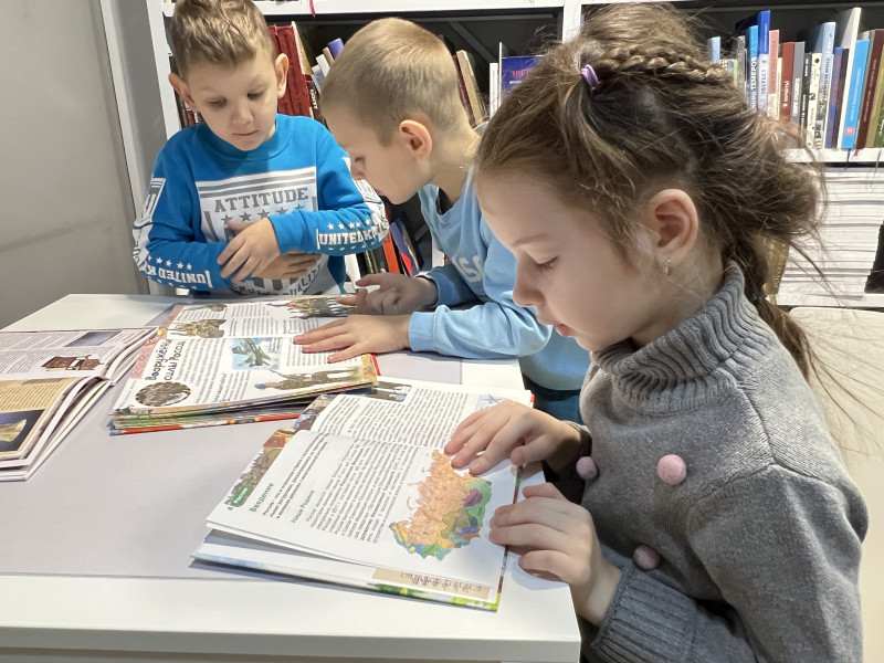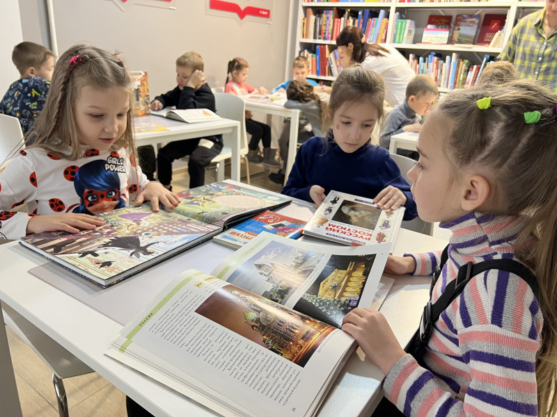Особое внимание было уделено книгам. Яркие детские энциклопедии и познавательные издания о России, предложенные библиотекарями, вызвали живой интерес. Дети с удовольствием их рассматривали и читали.