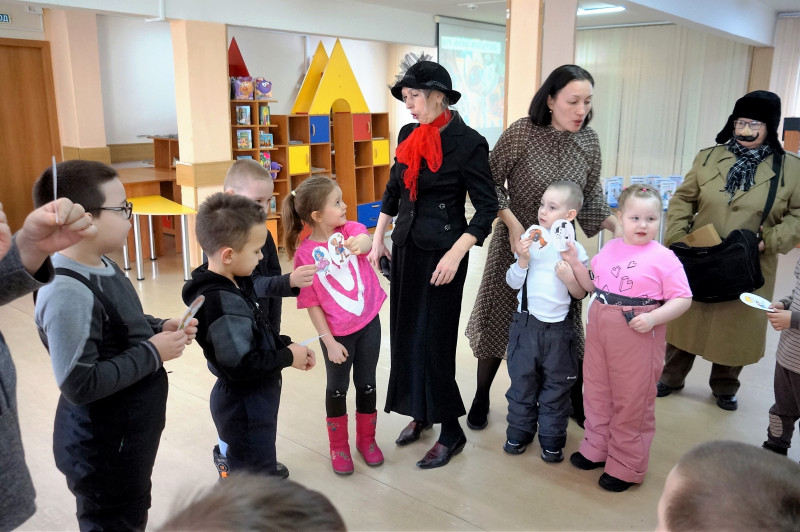 А дальше началось самое интересное! Юные читатели повстречались со своими любимыми героями: хитрая старуха Шапокляк искала друзей, и ребята с радостью приняли её в свою компанию – научили доброте и взаимопониманию. А почтальон Печкин принёс загадочные письма с непростыми заданиями: нужно было отыскать пары литературных героев и собрать «Сказочные пазлы».