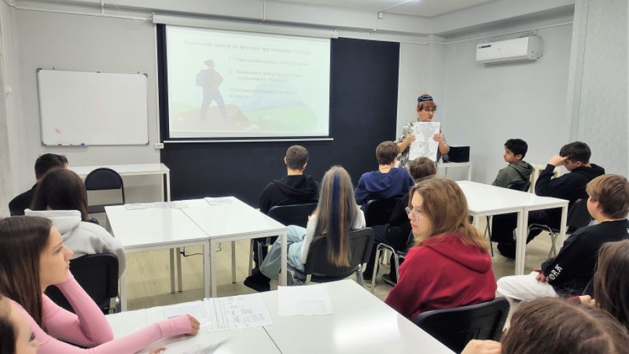 Началась встреча с погружения в теорию: оказалось, что даже у прогулки есть своя стратегия. Ребята разбирались, чем именно примечательны познавательные маршруты и чем они отличаются от других. Главный акцент в рамках мероприятия был сделан именно на познавательном туризме, который открывает тайны истории родного города.
