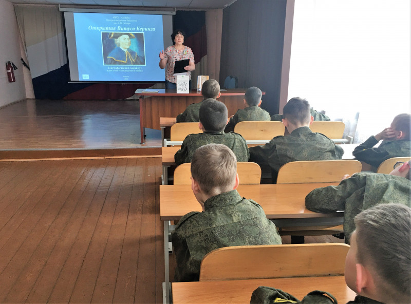 К 345-летию со дня рождения знаменитого мореплавателя, капитан-командора Витуса Беринга сотрудники Центральной детской библиотеки им. А. П. Гайдара предложили шестиклассникам Ачинского кадетского корпуса им. Героя Советского Союза Г.Г. Голубева пройти по географическому маршруту «Открытия Витуса Беринга».