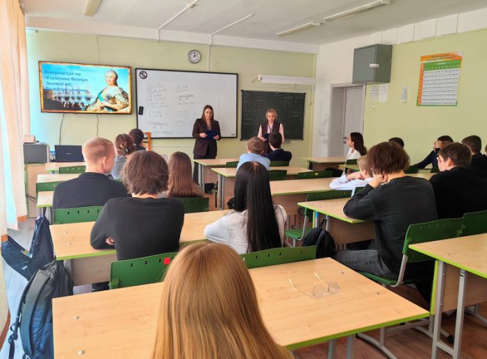 Сотрудники Юношеской библиотеки организовали познавательное мероприятие для старшеклассников школы № 3. Ученики погрузились в эпоху Екатерины Великой: узнали о её неординарной личности, изучили ключевые реформы, заложившие основы могущества Российской империи, и познакомились с культурным расцветом, который стал визитной карточкой её правления.