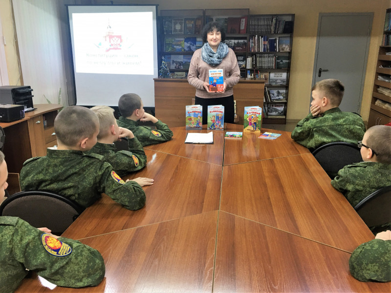 Сотрудники Центральной детской библиотеки им. А. П. Гайдара провели для пятиклассников Ачинского кадетского корпуса правовой ринг «Конституция – закон, по нему мы и живём!».