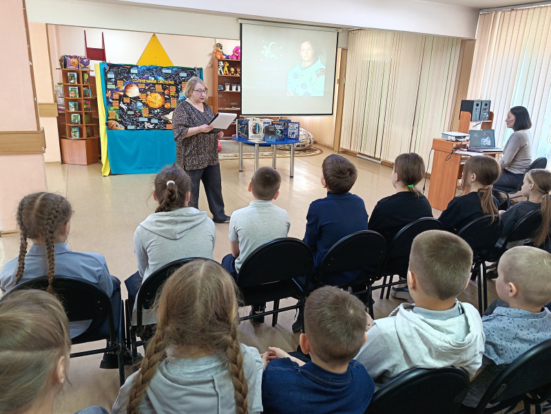 Мальчишки и девчонки познакомились с биографией лётчика-космонавта СССР Юрия Гагарина – первого человека в мире, совершившего полёт в космос 12 апреля 1961 года. Библиотекари рассказали о его тяжёлом военном детстве, семье и школьных годах. Затаив дыхание, ребята слушали рассказ о первом отряде космонавтов, о тренировках и подготовке к полёту. Встреча сопровождалась кадрами документальной хроники о первом полёте Юрия Гагарина в космос.