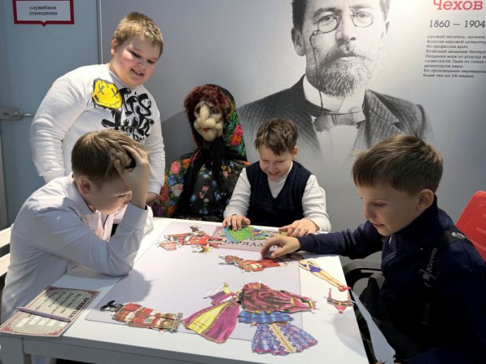 Дети с азартом отгадывали русские народные загадки, наряжали бумажных кукол в национальные костюмы народов России (здесь ребята проявили фантазию и узнали о многообразии культур нашей страны). А за компьютером их ждало испытание «Секретный рецепт»: нужно было по ингредиентам и описанию вспомнить традиционное русское народное блюдо.