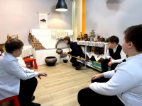 Для участников квест-игры «Русская изба» была воссоздана атмосфера старинного деревянного дома: с печкой, ухватом, прялкой, рубелем и чугунками. Ребята не только узнали названия и назначение этих предметов, но и смогли их потрогать, подержать в руках и даже попробовать применить по назначению. Например, примериться, как хозяйка доставала чугунок из печи ухватом, или представить, как рубелем разглаживали ткань.
