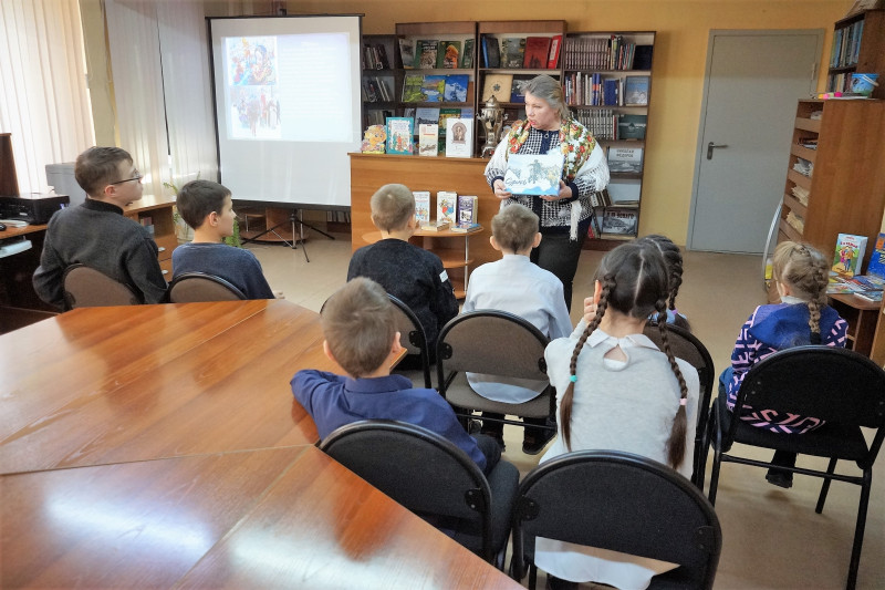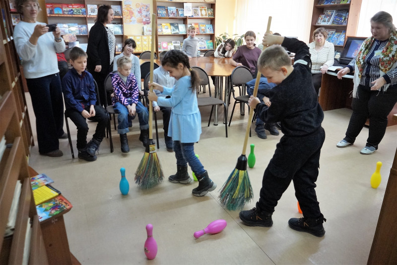 Также гости узнали о том, что всегда на Масленицу люди тешились песнями, плясками, играми и развлечениями, и сегодня нам остаётся только порадоваться тому, что проходили годы и столетия, сменялись поколения, а традиция празднования Масленицы продолжает жить. Ребята с удовольствием присоединились к этой традиции: весело и задорно приняли участие в масленичных забавах: «Напеки блины», «Принеси водицы», «Кто быстрее на метле» и других. Мальчишки и девчонки соревновались в отгадывании загадок о блинах, солнышке, весне. А в завершении встречи познакомились с книжной выставкой, посвящённой народным традициям и праздникам.