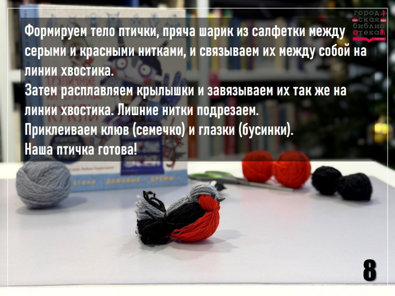 #БиблиотекиАчинска #КультураКрасноярья #БиблиотекаЧехова #мастеркласс #птичкасвоимируками #птичкаизниток #теплоесердце #снегирьизниток #поделканаелку #сновымгодом #игрушкаизниток