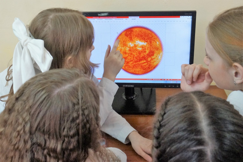 Следующим этапом стал просмотр завораживающего видеоролика по астрономии. Дети смогли ощутить головокружительные масштабы космоса: от мельчайших планет до гигантских звезд, галактик и самой Вселенной. Визуализация космоса вызвала у юных гостей неподдельный восторг и восхищение.