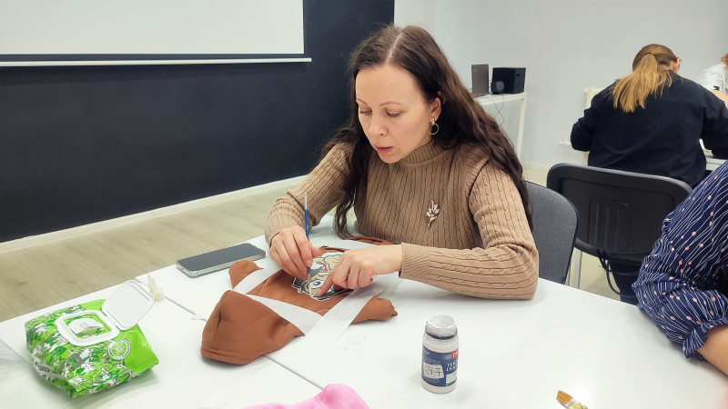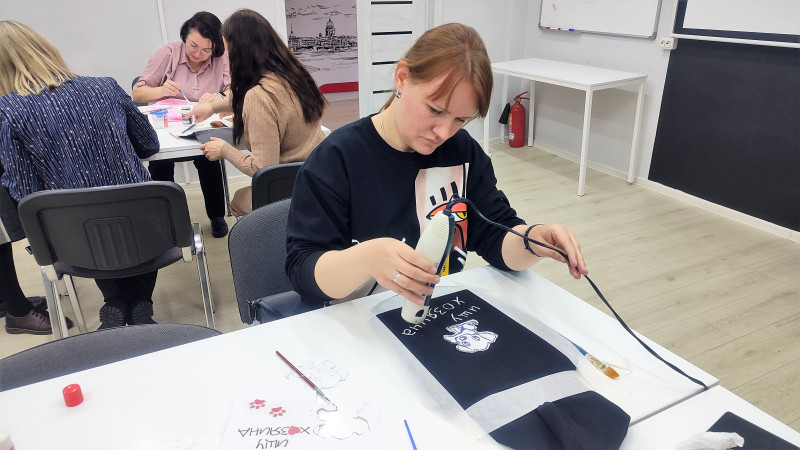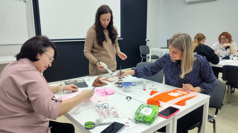 За творческий процесс вновь отвечала мастер декоративно-прикладного творчества Елена Царенко. Атмосфера на занятии царила по-настоящему душевная. Участники мастер-класса с головой окунулись в атмосферу креатива. В итоге «гардеробная» проекта пополнилась новыми свитшотами для животных разных расцветок и размеров, на которых участники своими руками наносили оригинальные принты, забавные мордочки собак и надписи: «Ищу хозяина», «Я жду тебя, хозяин», которые помогут питомцам приюта стать ярче и заметнее и, конечно, обрести новую семью.