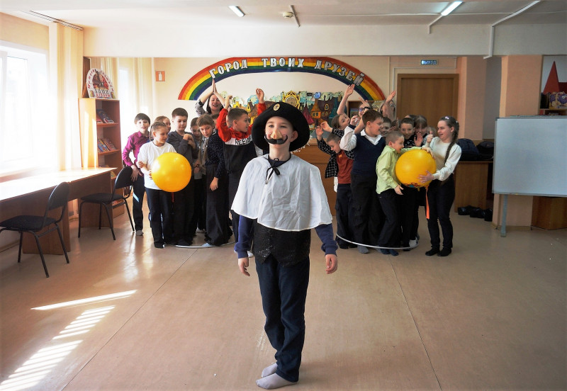 Ребята с огромным интересом слушали громкие чтения отрывков из этой замечательной книги, которая будоражит воображение и волнует умы миллионов читателей во всем мире. Вместе с главным героем – отчаянным фантазёром бароном Мюнхгаузеном – участники клуба совершили невероятные путешествия по разным странам, в которых побывал сам барон. А один из ребят показал себя настоящим актером в жанре пантомимы в театрализованной сценке «Игра одного актёра». В ней он блестяще исполнил роль самого барона Мюнхгаузена! А затем вся дружная компания совершила «Полёт на ядре», покорив Луну и благополучно вернувшись на Землю. Но самым удивительным случаем для ребят стала прогулка по лесу, где под руководством барона они попытались с завязанными глазами вернуть хвостик раненому поросёнку.