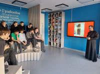 В преддверии великого православного праздника Пасхи сотрудники Центральной детской библиотеки им. А. П. Гайдара совместно со штатным священником Казанского кафедрального собора г. Ачинска иереем Артемием Катюшкиным провели для учащихся средней школы № 5 им. Марачкова А. О. пасхальный благовест «Праздник света, праздник веры».