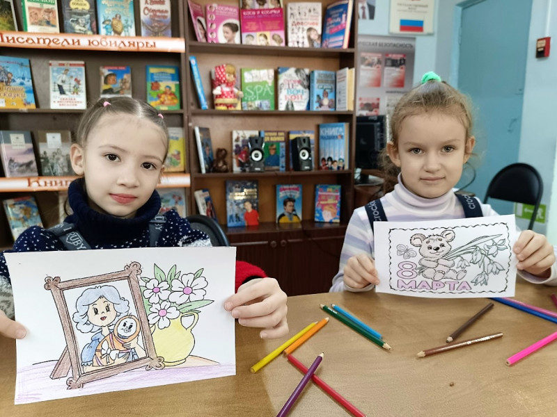 Юные гости с удовольствием познакомились со стихами и рассказами, посвящёнными женскому дню, приняли участие в литературной викторине, отгадали весёлые загадки, послушали трогательные песенки о мамах и поучаствовали в тематических играх. В завершение мероприятия дошкольники с радостью раскрасили поздравительные открытки – тёплые послания для самых дорогих людей.