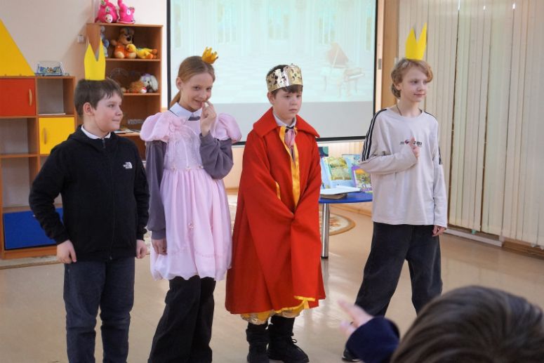 После просмотра фрагментов фильма юные зрители почувствовали себя настоящими художниками: с закрытыми глазами на ватмане они изображали Принцессу, Короля и Принца. А затем в гости к ребятам пришли… сами персонажи! Король, Принц и Принцесса провели увлекательную «Королевскую викторину», устроили состязания для юных мастериц и, конечно, организовали поиски настоящих принцесс, определяя их с помощью горошины.
