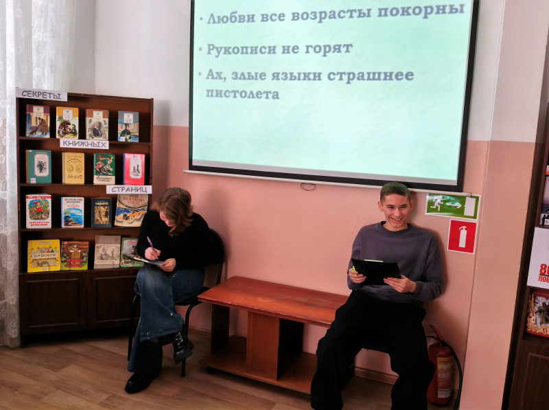 Сотрудники детской библиотеки-филиала № 4 провели для учащихся школы № 10 литературную игру «Секреты книжных страниц». Данная игра способствует развитию языковой и читательской культуры, расширяет кругозор и формирует интерес к классической и современной литературе, прививая любовь к книгам и чтению. Задания составлены таким образом, чтобы участники смогли проявить свои знания, эрудицию и способность эффективно взаимодействовать друг с другом.
