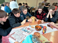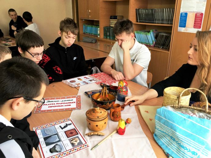 Разделившись на команды, участники сделали четыре тематических остановки. В «Радуге народных промыслов» ребята узнали много нового и интересного о традиционных народных промыслах России и закрепили свои знания, сыграв в этно-лото. Далее участники ответили на вопросы интерактивной викторины-игры «Традиции живая нить» о народных обычаях и традициях проведения зимних праздников. В локации «В каждой избушке свои игрушки» ведущая рассказала об истории, значении и секретах изготовления народных кукол-оберегов, а затем ребята увлеченно создавали из ниток и кудели собственную сувенирную куклу-оберег. «Секреты старинных профессий» погрузили игроков в мир старинных ремёсел и профессий. Используя предложенные подсказки, ребята старались догадаться, чем занимались в прошлые века люди той или иной профессии.