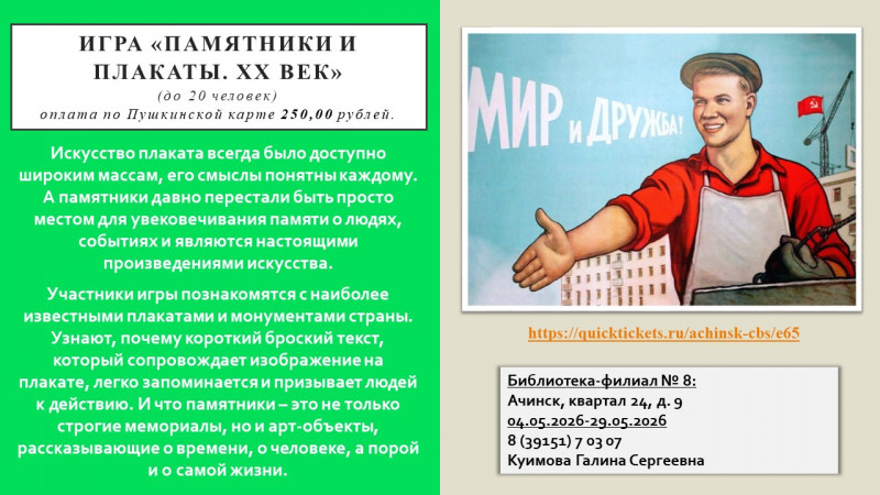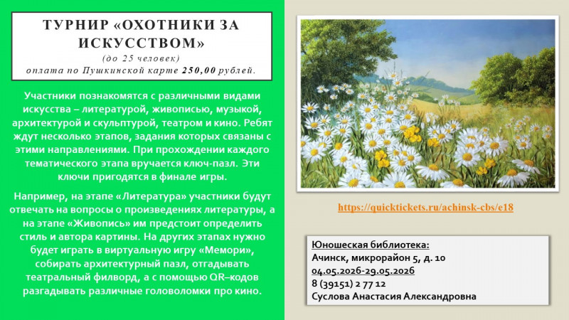 #КрайВысокойКультуры #БиблиотекиАчинска #КультураКрасноярья #ПушкинскаяКарта24