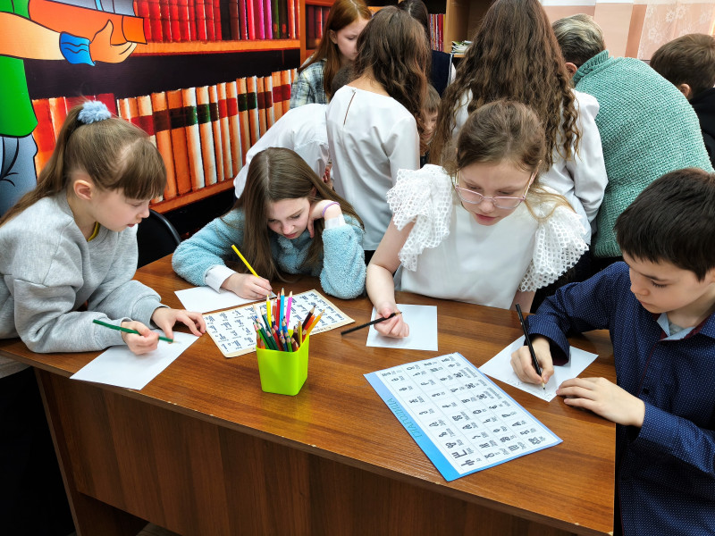 Путешествие завершилось интерактивной частью: школьники с увлечением отвечали на вопросы викторины о славянской азбуке и её создателях, разгадывали загадки о книгах и чтении, а затем попробовали себя в роли древнерусских писцов – вывели собственные имена славянскими буквами.