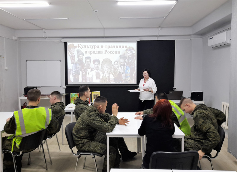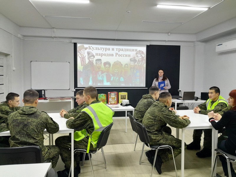 Сотрудники Центральной городской библиотеки им. А.С. Пушкина провели для военнослужащих российской армии увлекательную квест‑игру «Культура и традиции народов России». Участники отправились в захватывающее путешествие по четырем станциям, где их ждали задания, раскрывающие всё многообразие обычаев, фольклора и народных промыслов нашей многонациональной страны.