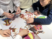 Дети с азартом отгадывали русские народные загадки, наряжали бумажных кукол в национальные костюмы народов России (здесь ребята проявили фантазию и узнали о многообразии культур нашей страны). А за компьютером их ждало испытание «Секретный рецепт»: нужно было по ингредиентам и описанию вспомнить традиционное русское народное блюдо.