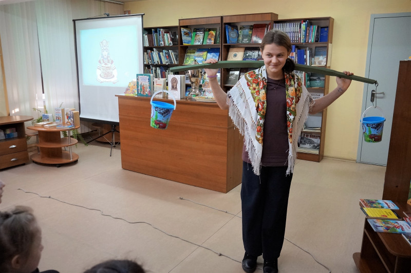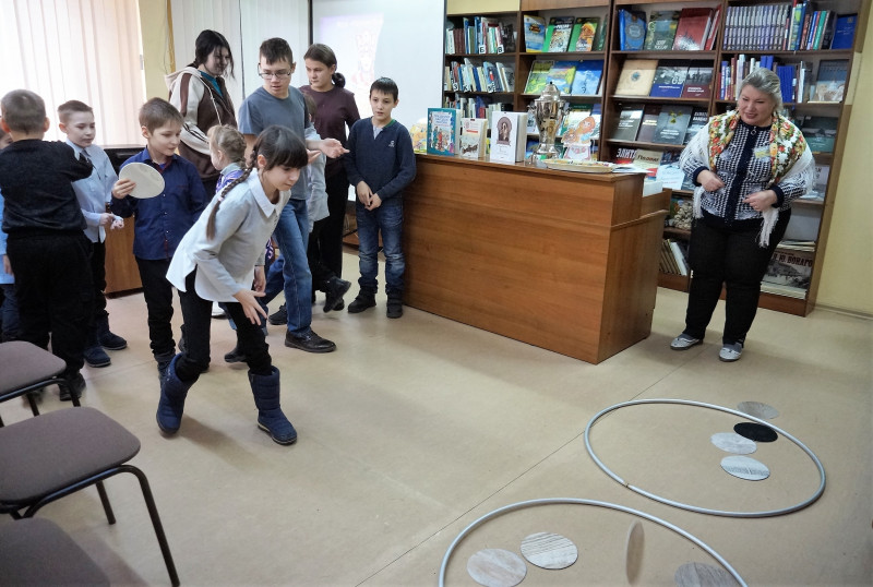 Также гости узнали о том, что всегда на Масленицу люди тешились песнями, плясками, играми и развлечениями, и сегодня нам остаётся только порадоваться тому, что проходили годы и столетия, сменялись поколения, а традиция празднования Масленицы продолжает жить. Ребята с удовольствием присоединились к этой традиции: весело и задорно приняли участие в масленичных забавах: «Напеки блины», «Принеси водицы», «Кто быстрее на метле» и других. Мальчишки и девчонки соревновались в отгадывании загадок о блинах, солнышке, весне. А в завершении встречи познакомились с книжной выставкой, посвящённой народным традициям и праздникам.