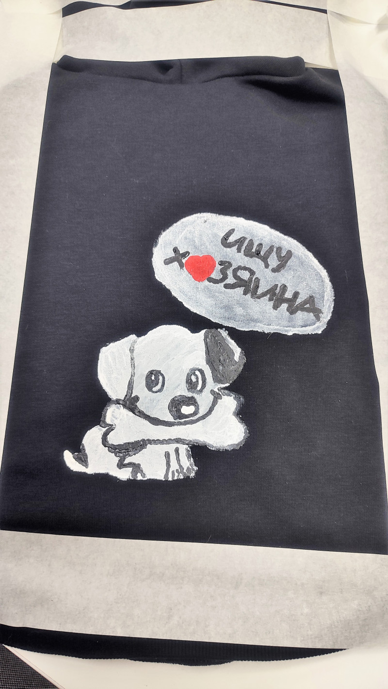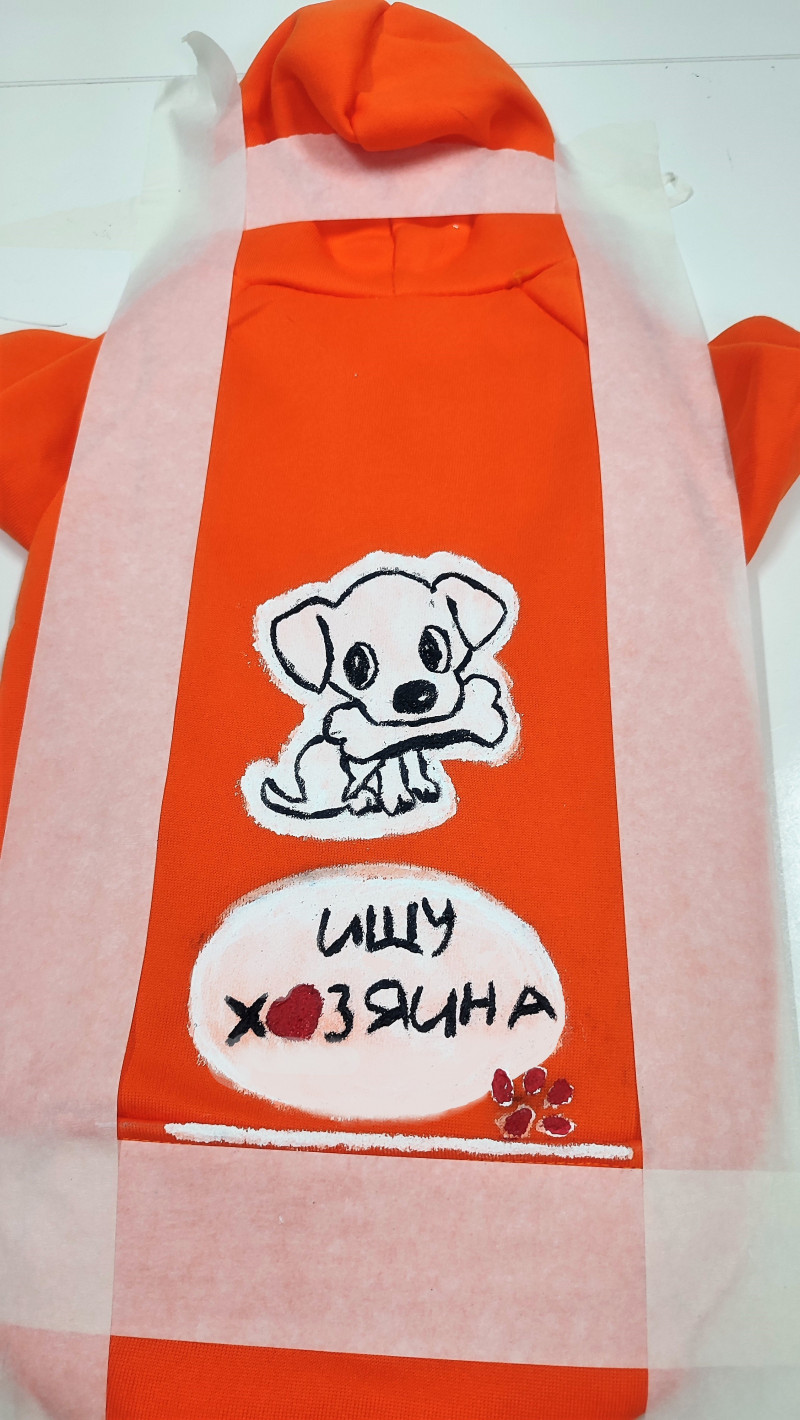 За творческий процесс вновь отвечала мастер декоративно-прикладного творчества Елена Царенко. Атмосфера на занятии царила по-настоящему душевная. Участники мастер-класса с головой окунулись в атмосферу креатива. В итоге «гардеробная» проекта пополнилась новыми свитшотами для животных разных расцветок и размеров, на которых участники своими руками наносили оригинальные принты, забавные мордочки собак и надписи: «Ищу хозяина», «Я жду тебя, хозяин», которые помогут питомцам приюта стать ярче и заметнее и, конечно, обрести новую семью.