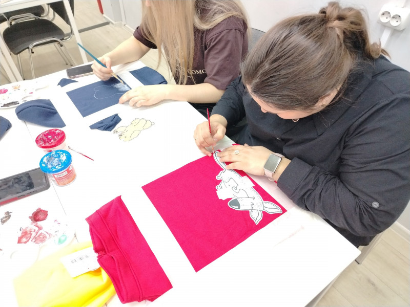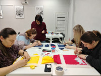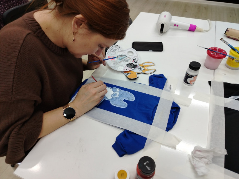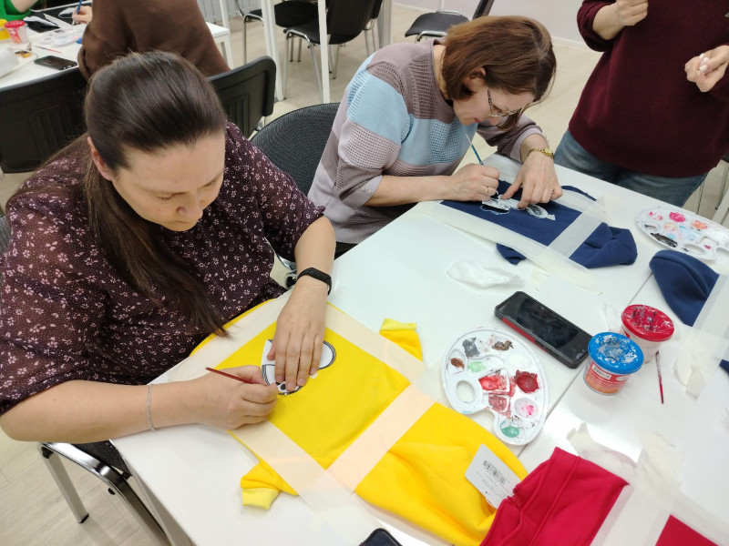 Наставником встречи выступила мастер декоративно-прикладного творчества Елена Царенко. Под её руководством участники мастер-класса освоили тонкости росписи по ткани, превратив однотонные вещи в яркие авторские изделия. В ход шли краски, кисти, трафареты и безграничная фантазия.