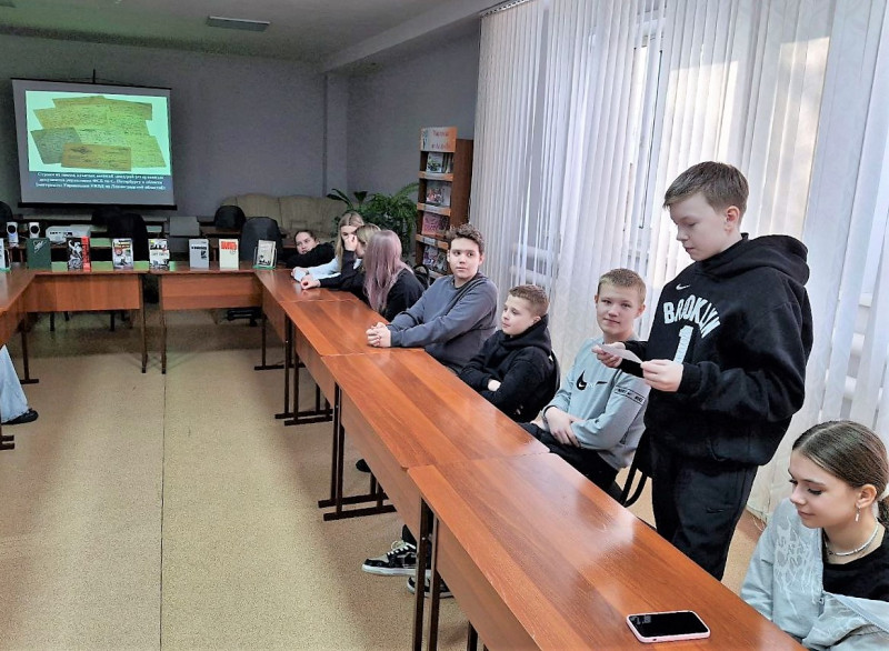 Сотрудники библиотеки-филиала № 5 провели для учащихся школы № 18 урок мужества. Ребята погрузились в суровую реальность осаждённого города: узнали о нечеловеческих испытаниях, выпавших на долю ленинградцев, – о голоде и лютых холодах, о строгих продовольственных карточках и бесценных граммах блокадного хлеба.