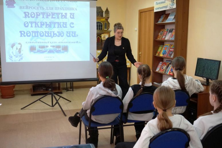 В преддверии Международного женского дня в Центральной детской библиотеке им. А. П. Гайдара состоялось необычное творческое мероприятие. Участники компьютерного клуба «Библиопорт@л» открыли для себя магию современных технологий: с помощью нейросетей они создали уникальные портреты и праздничные открытки.