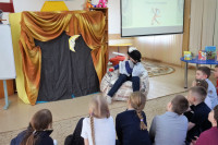 Ребята с огромным интересом слушали громкие чтения отрывков из этой замечательной книги, которая будоражит воображение и волнует умы миллионов читателей во всем мире. Вместе с главным героем – отчаянным фантазёром бароном Мюнхгаузеном – участники клуба совершили невероятные путешествия по разным странам, в которых побывал сам барон. А один из ребят показал себя настоящим актером в жанре пантомимы в театрализованной сценке «Игра одного актёра». В ней он блестяще исполнил роль самого барона Мюнхгаузена! А затем вся дружная компания совершила «Полёт на ядре», покорив Луну и благополучно вернувшись на Землю. Но самым удивительным случаем для ребят стала прогулка по лесу, где под руководством барона они попытались с завязанными глазами вернуть хвостик раненому поросёнку.