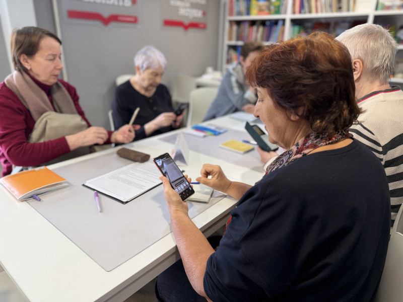 В течение месяца в библиотеке реализовывался проект «Старшее поколение на связи!». Состоялось 12 встреч, на которых участники под руководством библиотекарей шаг за шагом осваивали премудрости обращения со смартфоном: от базовых настроек до полезных приложений и сервисов.