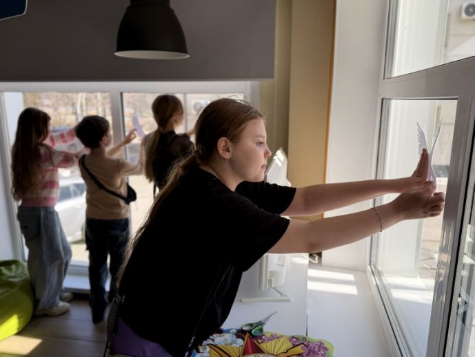 В Городской библиотеке им. А. П. Чехова решили, что к такому делу нужно подходить вдумчиво и творчески. Для юных читателей организовали творческую мастерскую «Окна памяти», где рассказали не только о символах Победы – голубе, журавлях, звезде и георгиевской ленте, – но и о настоящем искусстве оформления: что такое композиция и зачем нужен эскиз.