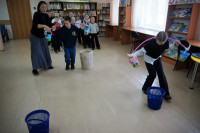 Затем ребята побывали в роли Рукодельницы и помогли ей собрать ароматные, наливные яблочки, наносили полные ведёрки колодезной водицы, вытащили из печи румяные пироги, ответили на вопросы «Сказочной викторины». В завершении, как настоящие актёры, обыграли сценку встречи Ленивицы с Морозом Ивановичем, а в награду юные артисты получили бурные аплодисменты зрителей.