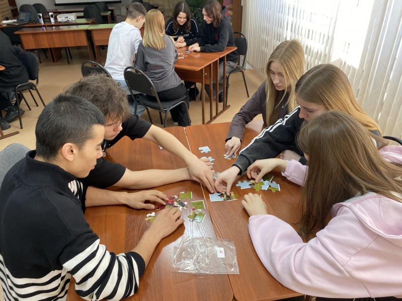 Сначала участники собрали пазл с изображениями русских потех, с увлечением угадывая названия старинных развлечений. Затем они перевоплотились в актёров, оживив традиционные праздники в небольших сценках – так старинные обряды заиграли новыми красками.