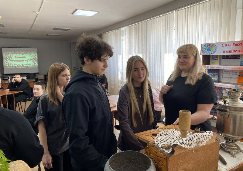 Далее игроков ждали интеллектуальные испытания: вопросы о народных приметах и многовековых традициях, кроссворд на тему русского быта, где нужно было вспомнить предметы и обычаи предков, а также кулинарный этап, в котором требовалось назвать старинные русские блюда по набору ингредиентов.