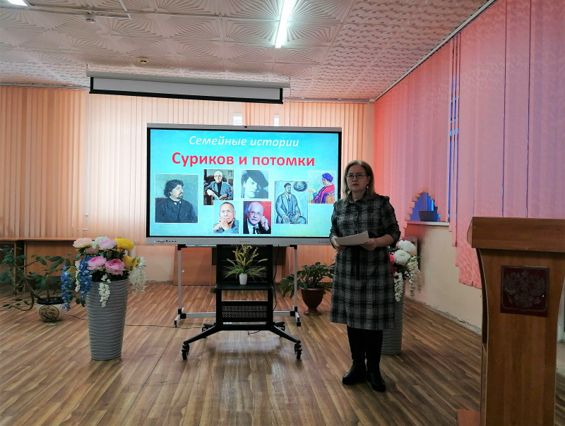 Специалисты библиотеки-филиала № 8 провели для студентов Ачинского филиала Красноярского государственного аграрного университета игру «Семейные истории: Суриков и потомки». Участники исследовали родословную семьи Михалковых-Кончаловских и узнали, как они связаны с нашим знаменитым земляком Василием Ивановичем Суриковым.