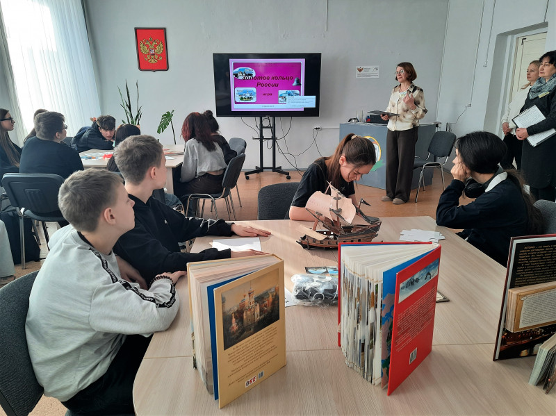 Сотрудники Центральной детской библиотеки им. А. П. Гайдара провели для старшеклассников школы № 4 игру «Золотое кольцо России». Ребята узнали много интересного о популярном туристическом маршруте «Золотое кольцо России», а затем проявили свои знания, логику, умение работать в команде на трех станциях.